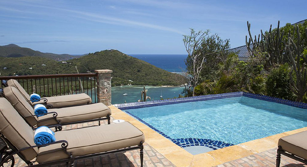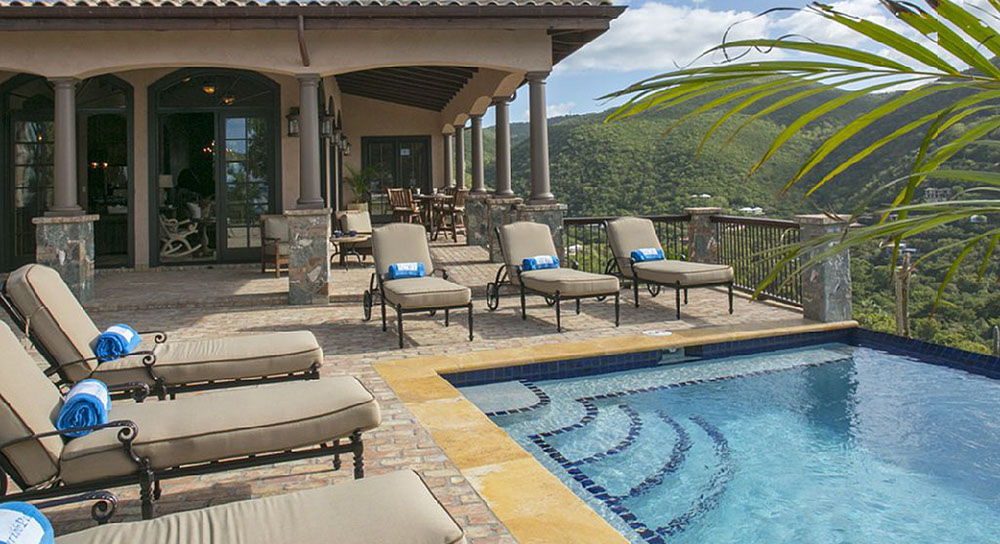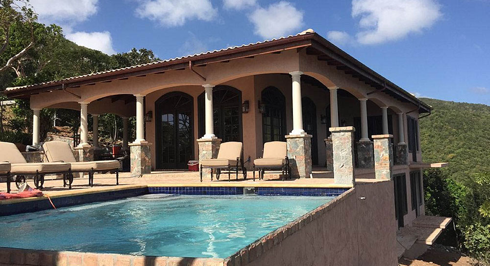 Caribbean Palm Villa is a brand new Pool Villa with spectacular 270 degree views in a Mediterranian/Tuscan/Caribbean setting, conveniently located just five minutes from downtown Cruz Bay.