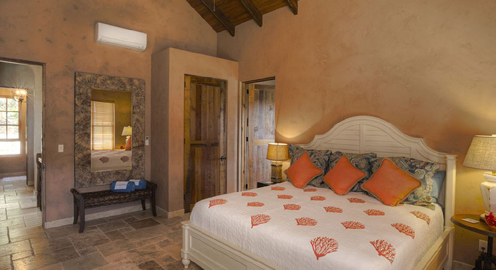 Three equal-sized master bedrooms each with AC and king beds will guarantee that each guest has a wonderful room – all with bay and ocean views. Each master suite has a private balcony, satellite television and cieling fans. Imagine taking a shower with the tradewinds blowing on you with an ocean view.