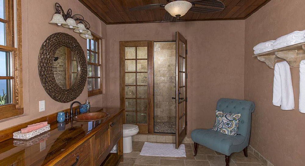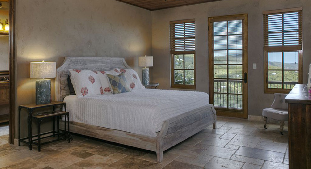 The decor of the villa is an elegant yet a but rustic theme which would mimic a Mediterranian/Tuscan villa that has met the Caribbean. Travertine floors, tongue and groove cypress cielings with exposed beams, Reclaimed Chicago Brick Pavers on the veranda and pool patio, and reclaimed barnwood custom cabinetry. All doors in the villa are 8 ft reclaimed barnwood as well. Vintage vanities with high end finishes in each room.