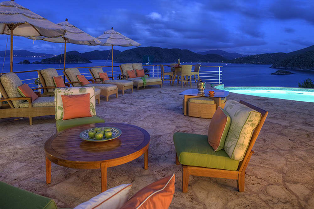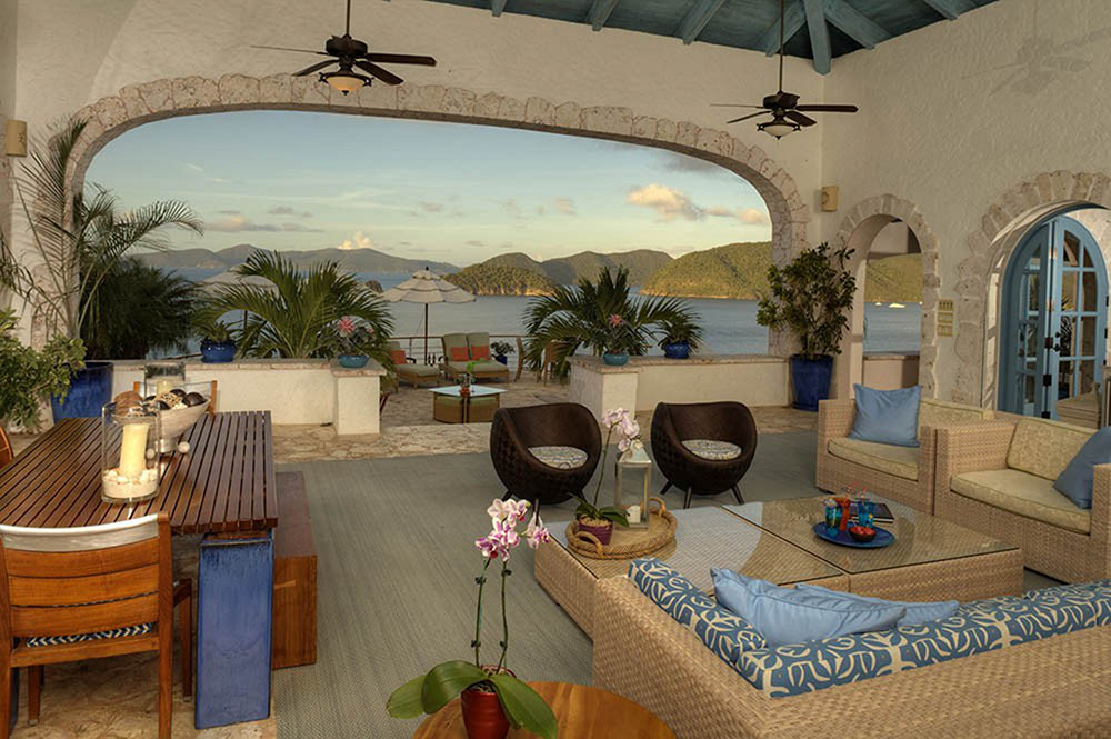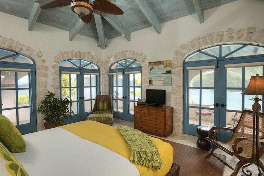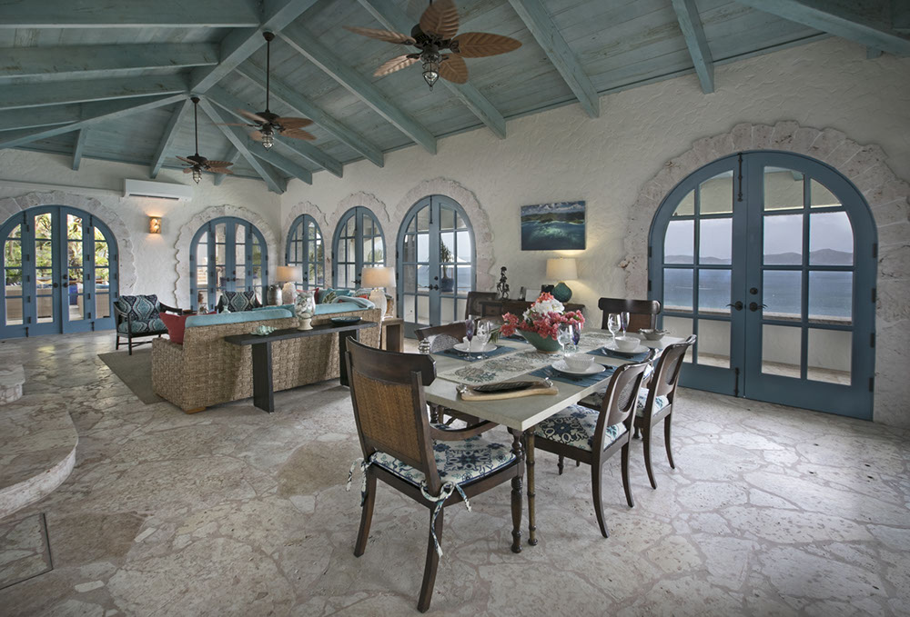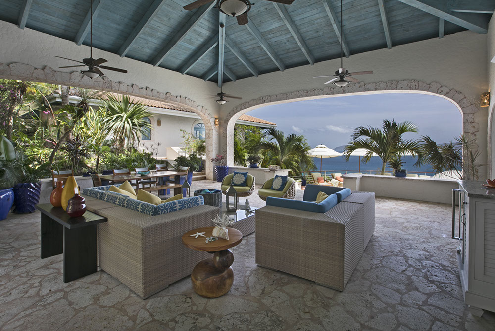 The Cliff House is one of the first homes built in St. John’s exclusive Peter Bay community. The location was chosen for it’s uniquely beautiful setting on three acres atop a cliff, overlooking incredible beaches, the neighboring British Virgin Islands, The Sir Frances Drake Channel and the Virgin Islands National Park. Along with the amazing views, enjoy a wonderful home that offers near constant tradewind breezes, luxurious furnishings and complete relaxation and privacy. The Cliff House Villa is truly an island paradise unto itself. The very large and spacious villa has 4 large bedrooms along with a state of the art fitness gym on site. This home will have you feeling relaxed as the days of your stay melt away, you may feel the need to go absolutely nowhere.