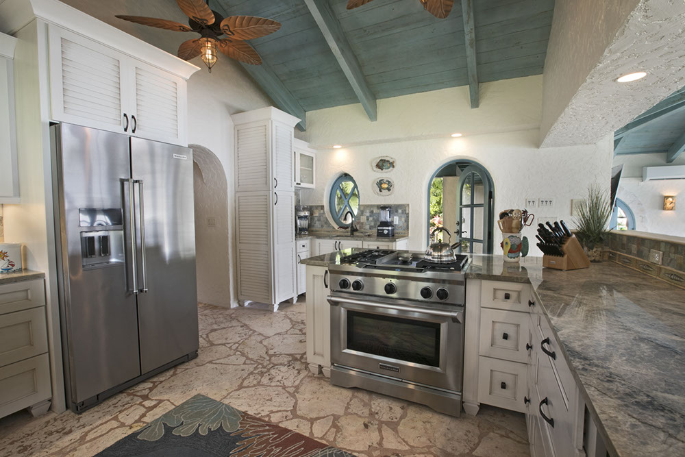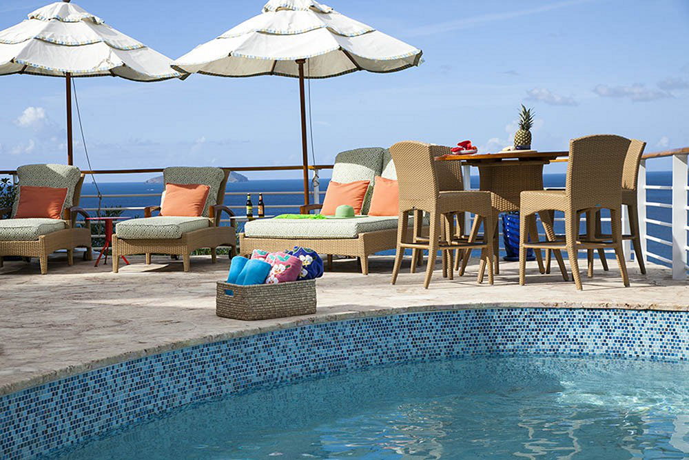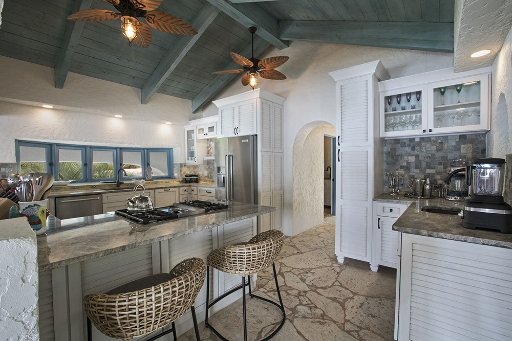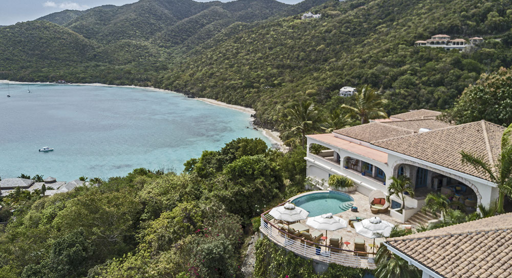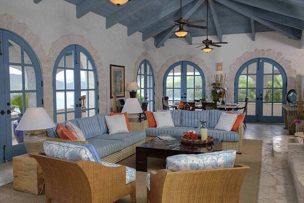 The Cliff House is one of the first homes built in St. John’s exclusive Peter Bay community. The location was chosen for it’s uniquely beautiful setting on three acres atop a cliff, overlooking incredible beaches, the neighboring British Virgin Islands, The Sir Frances Drake Channel and the Virgin Islands National Park. Along with the amazing views, enjoy a wonderful home that offers near constant tradewind breezes, luxurious furnishings and complete relaxation and privacy. The Cliff House Villa is truly an island paradise unto itself. The very large and spacious villa has 4 large bedrooms along with a state of the art fitness gym on site. This home will have you feeling relaxed as the days of your stay melt away, you may feel the need to go absolutely nowhere.